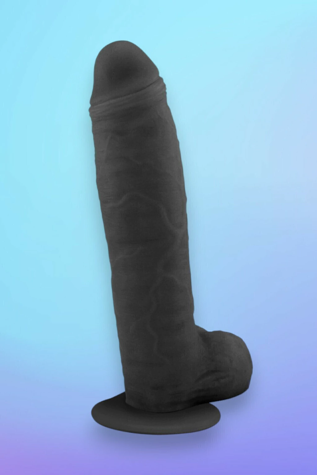Pênis Realístico em PVC Flexível com Escroto e Ventosa Baguete 24 x 5,5cm Preto - Eleve suas experiências íntimas a um novo patamar de prazer! Este pênis realístico é feito de polivinílico soft touch, proporcionando uma sensação firme, mas incrivelmente macia ao toque.