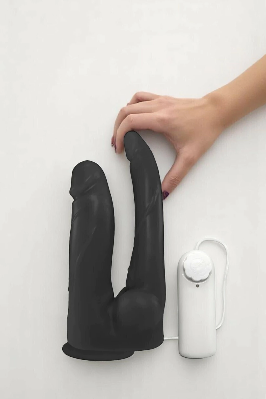 🔥 Pênis Duplo Realístico com Vibrador, Veias e Ventosa – Prazer em Dobro! 🖤🍆🍑