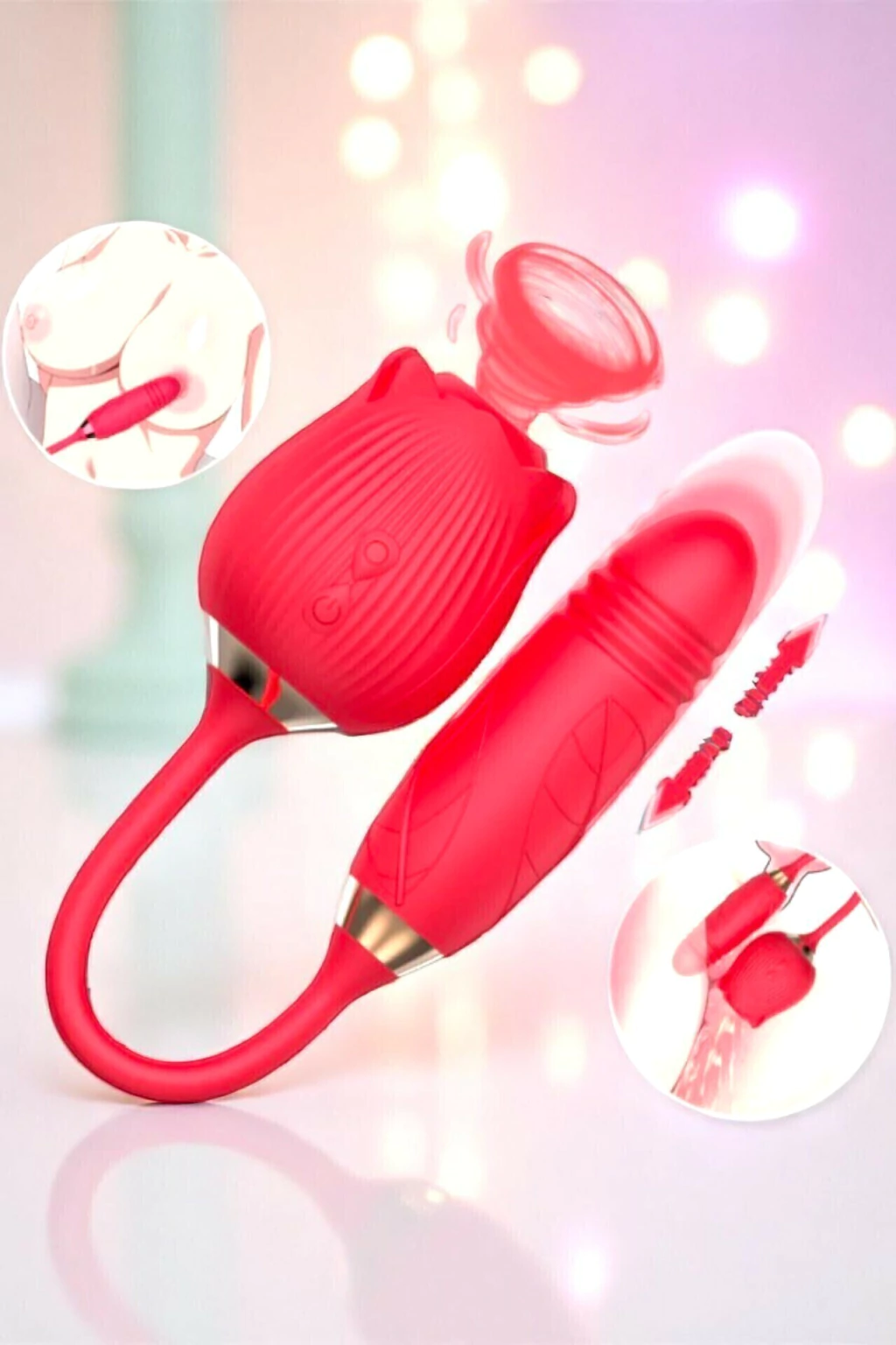 Esse vibrador é um verdadeiro show de estímulos! Com design luxuoso em formato de rosa, ele estimula o clitóris com ondas de pressão enquanto o eixo penetrável realiza movimentos de vai e vem – como uma verdadeira transa automatizada e deliciosa! 😍